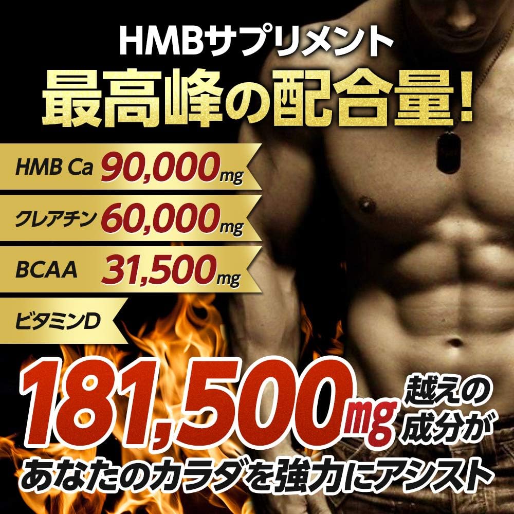 原材料 HMBカルシウム:90,000mg、クレアチン:60,000mg/結晶セルロース、BCAA:31500mg(Lロイシン、Lバリン、Lイソロイシン)、ステアリン酸カルシウム、微粒二酸化ケイ素、ビタミンD:450μg(18,000IU)